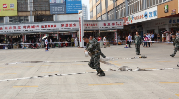 2017年6月28日,宣武集團在商貿城開展消防綜合演練活動。活動中,集團經(jīng)濟護衛(wèi)隊、市場業(yè)戶、消防隊進行了擒敵拳、班隊列、消防水帶連接、滅油盆火4個項目業(yè)務技能匯報表演,并與云龍消防大隊聯(lián)合進行了一次滅火和應急疏散演練。通過演練,進一步提升了職工、業(yè)戶的消防安全意識和應急處置能力。房管局系統(tǒng)、云龍區(qū)相關領導及駐市場工商、稅務等領導觀摩演練,并對演練效果給予高度評價。