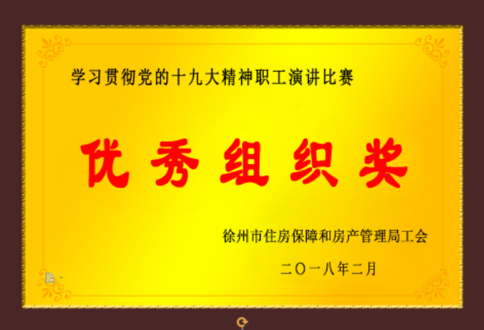 2月2日,房管局工會(huì)組織開(kāi)展學(xué)習(xí)貫徹黨的十九大精神職工演講比賽,公司獲優(yōu)秀組織獎(jiǎng)稱號(hào),葛玲、郭寅松分獲二等獎(jiǎng)、三等獎(jiǎng)。